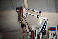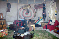 Over time and through the acquaintance of many skilled artisans and historians I have been fortunate enough to learn brain tanning, the carving of pipe stone into artistic pipes and then by carefully saving the filing dust have learned to use it as a color medium when producing artifact replicas to decorate my tipi with.giclee giclee schaefer giclee giclee |