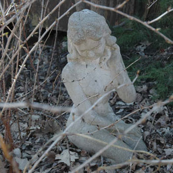 and is of a stone statue here at the studio. Next to the statue is