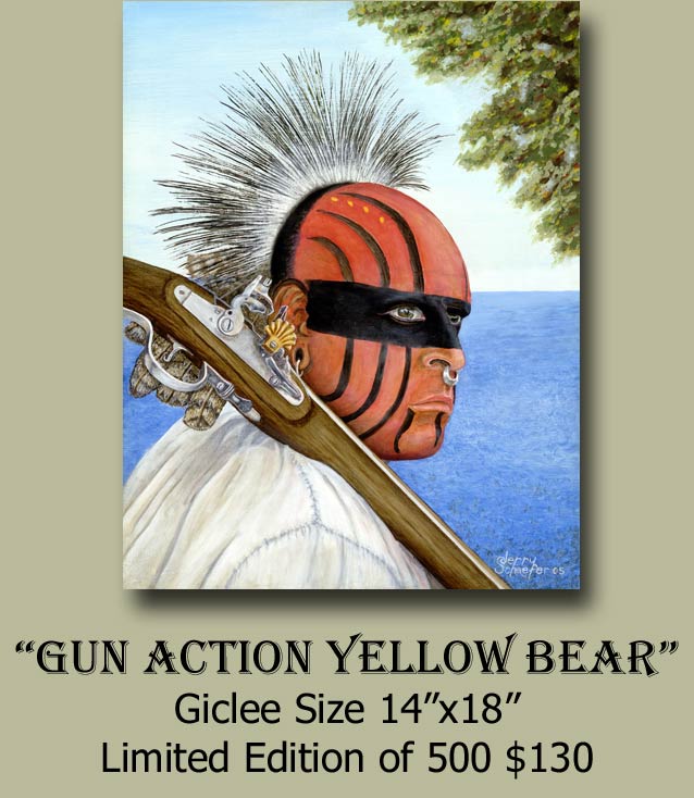 This painting was inspired by the workmanship of the action and brass flash guard reconstructed by Yellow Bear of a 1635 Dutch smooth bore rifle. It is my intent to continue painting a series of reenactors and the incredible machining that went into producing the guns that helped forge history. If you know of a likely candidate for my series please contact me. |